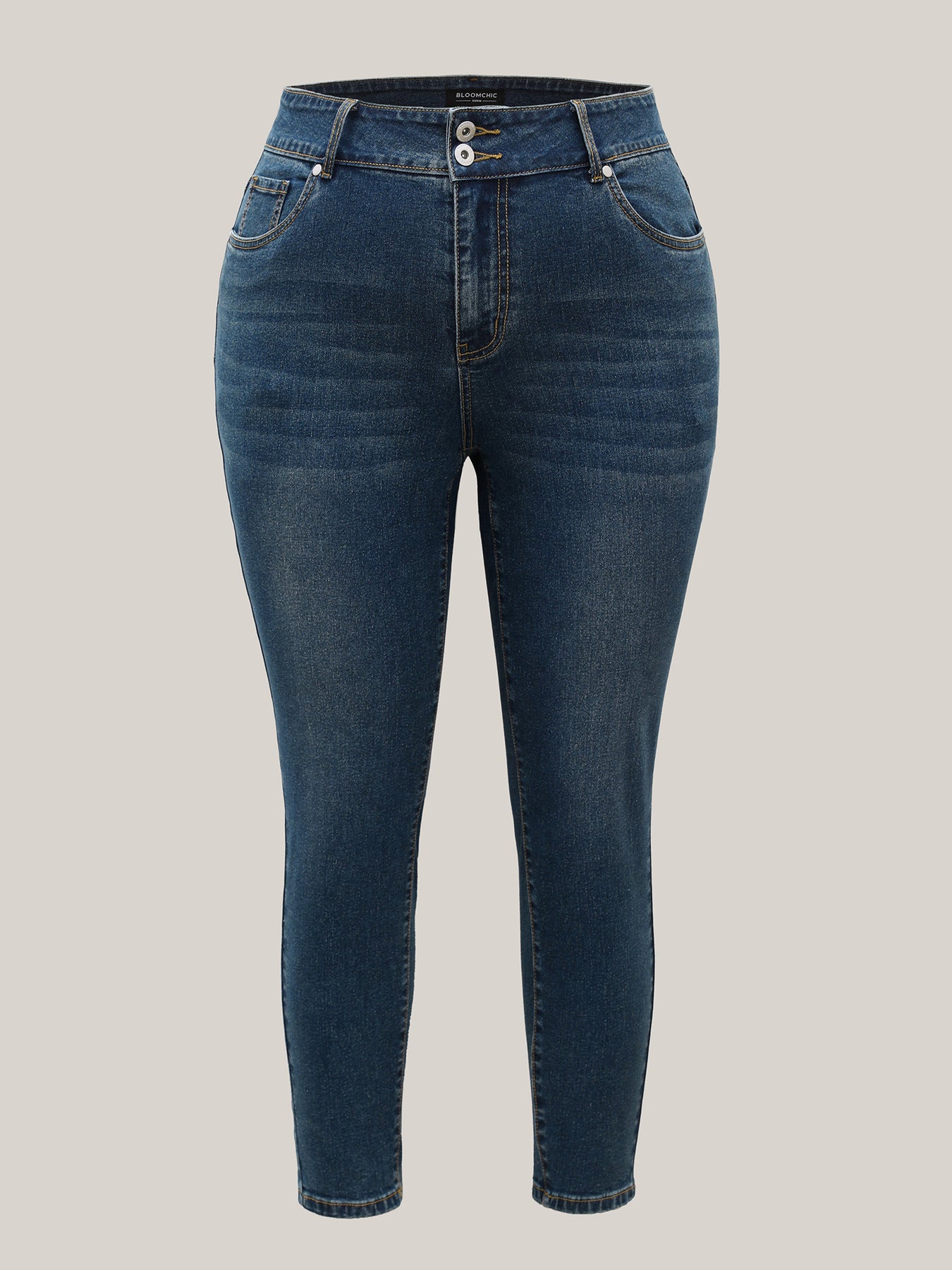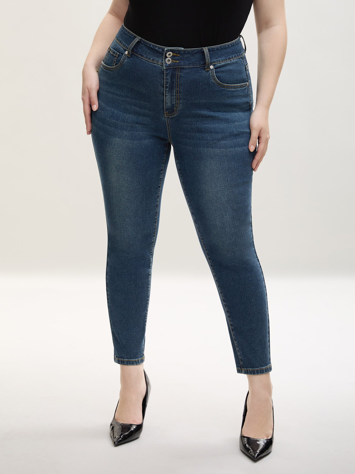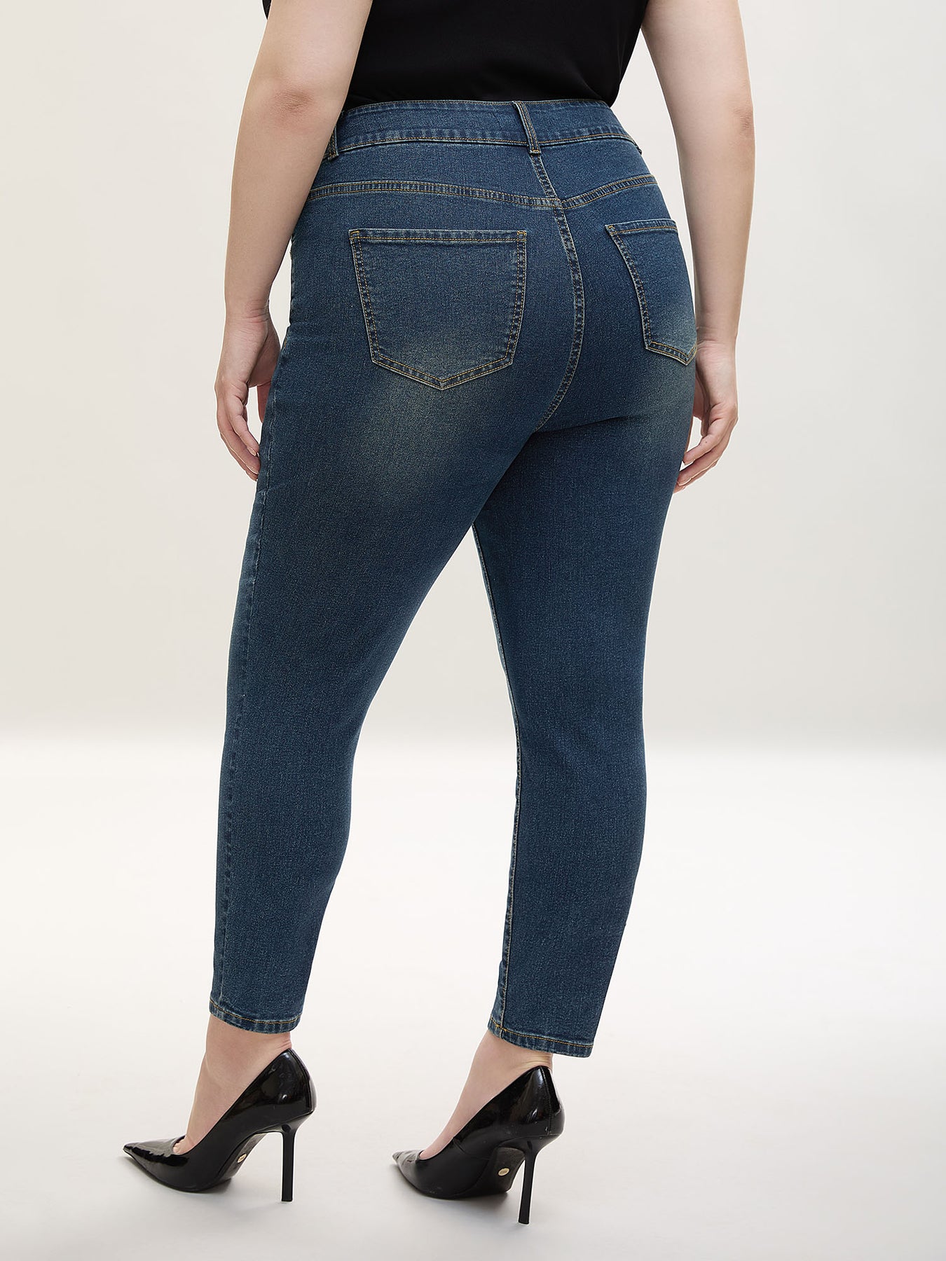 Whiskered Wash Mid-Rise Skinny-Fit Jeans