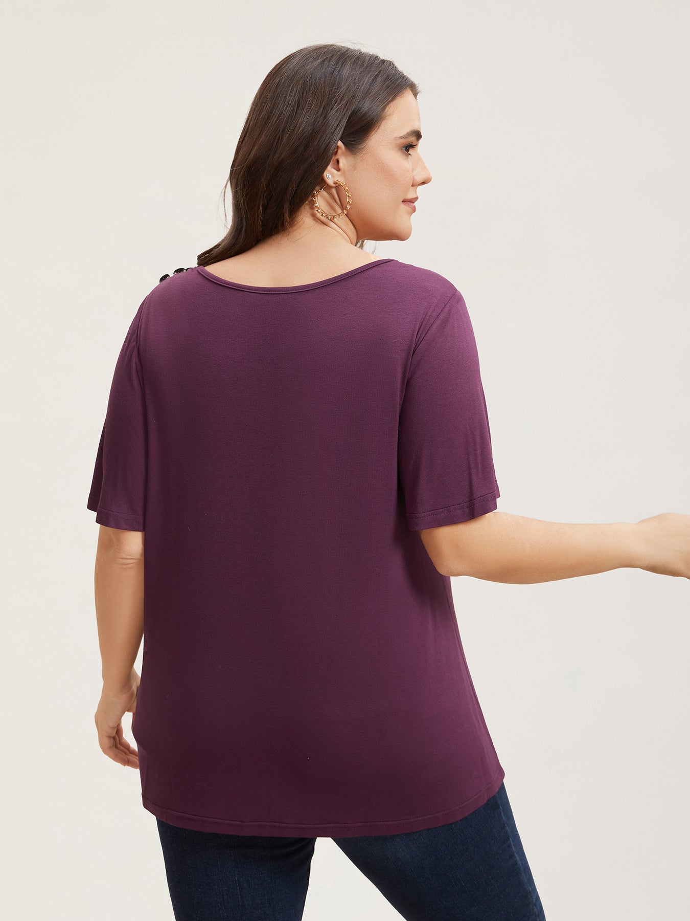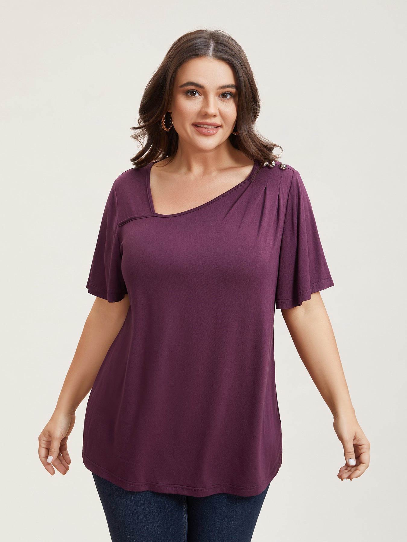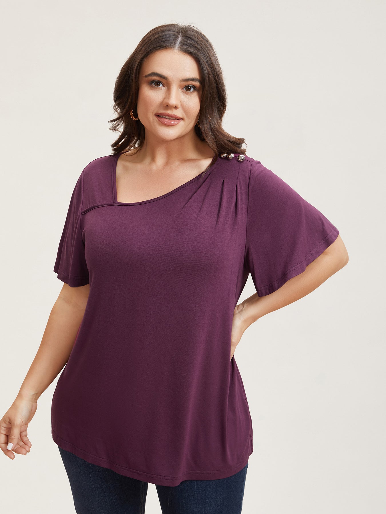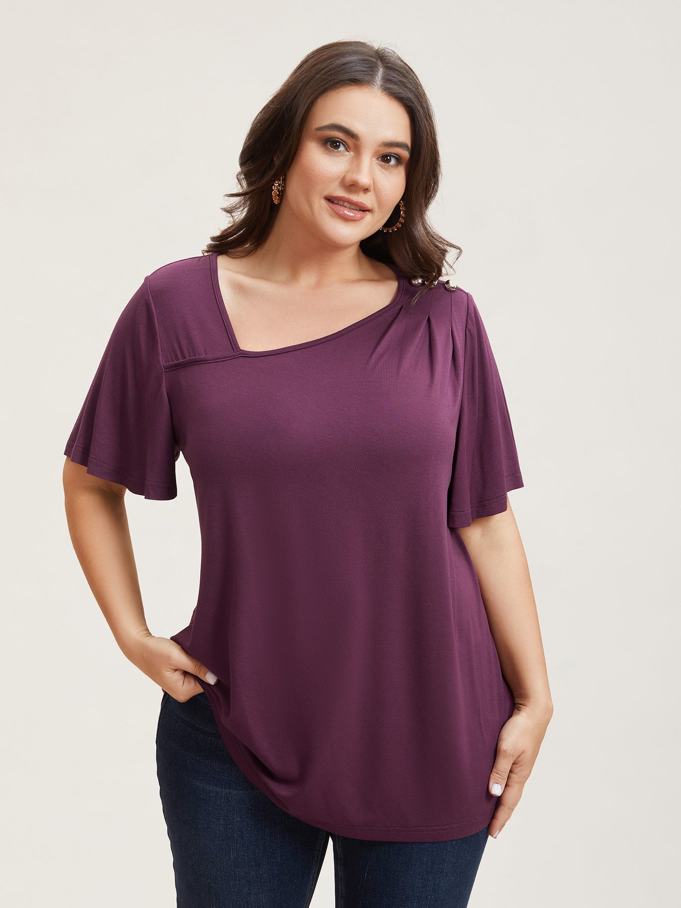 Supersoft Asymmetrical Neckline Flutter Sleeve T-Shirt