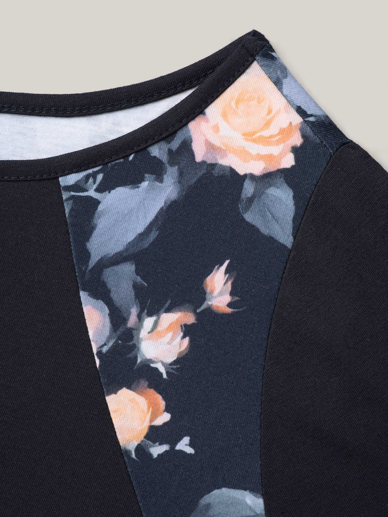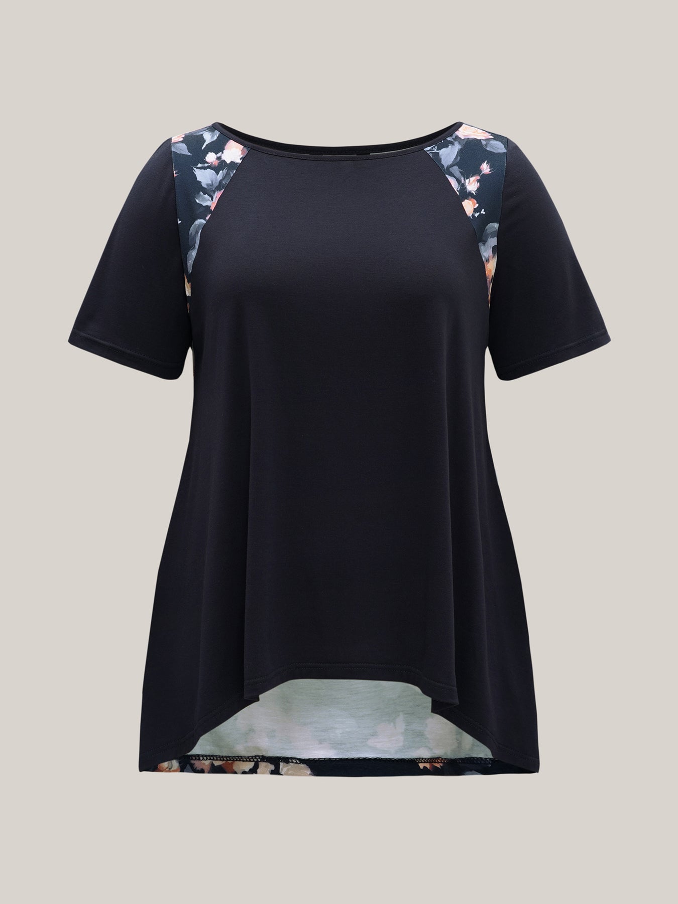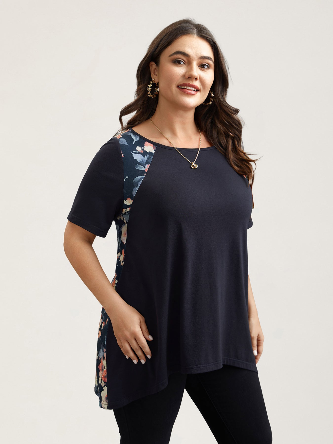 Round Neck Floral Print Patchwork Half Sleeve T-Shirt